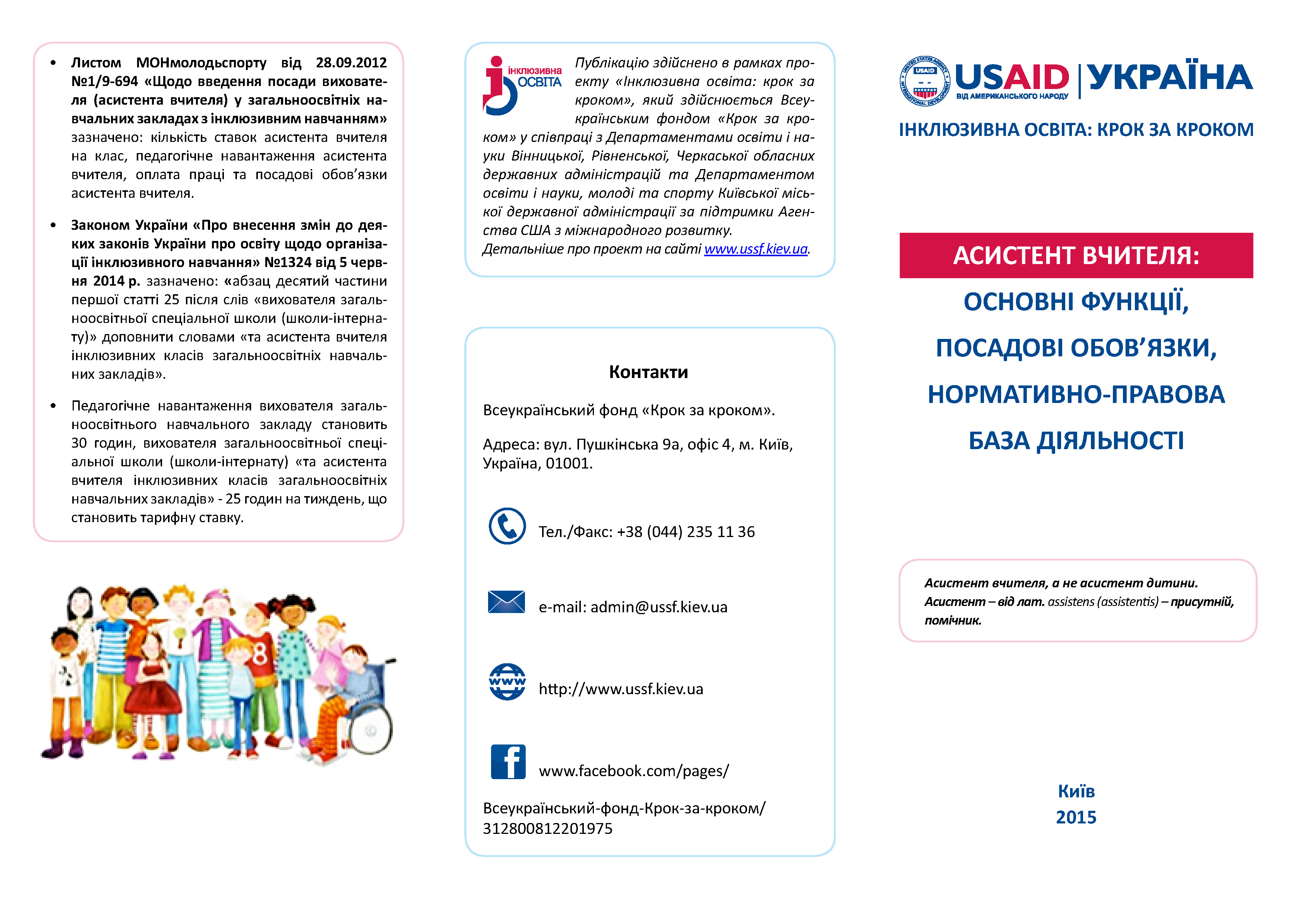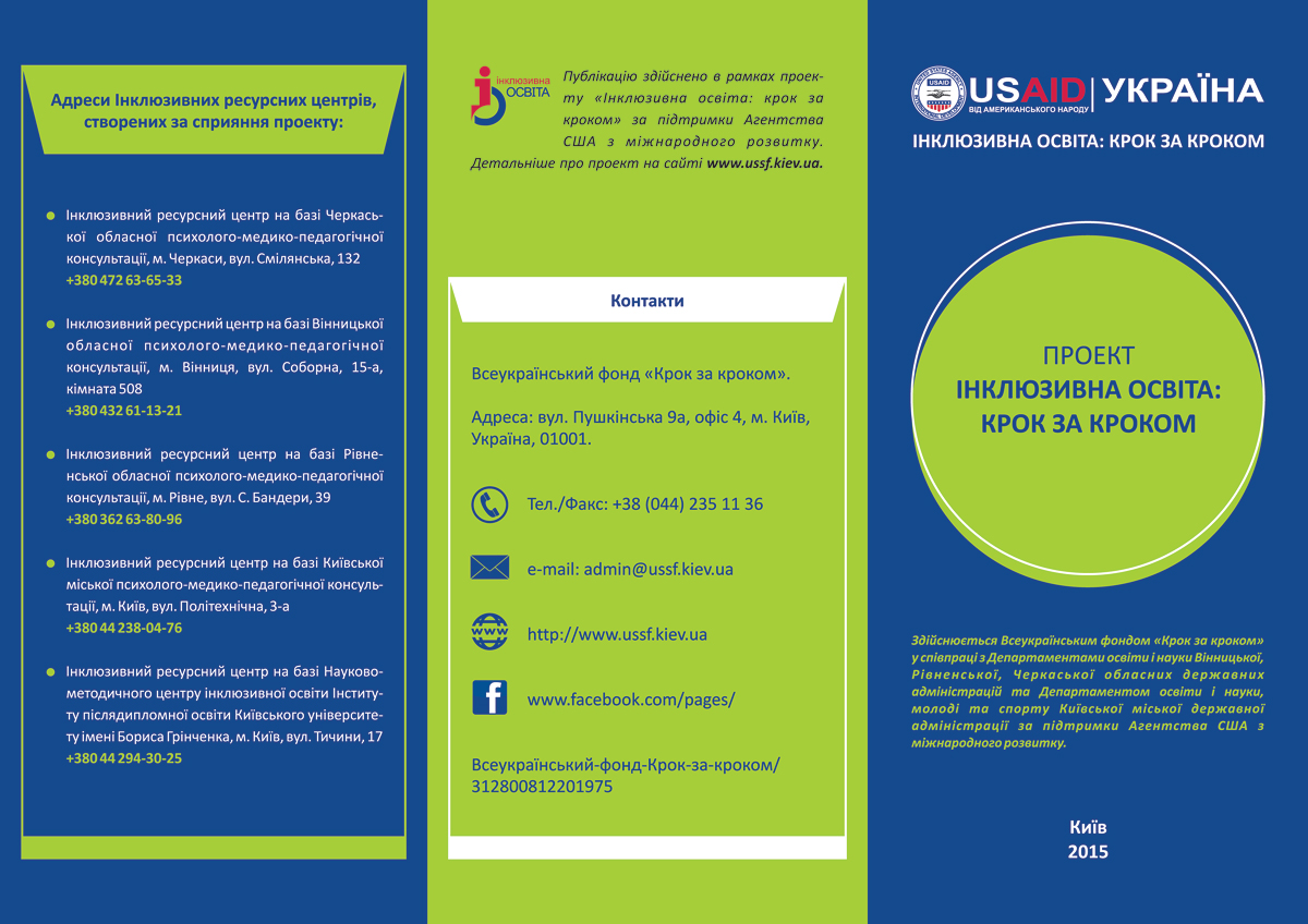 сприяння втіленню освітніх реформ з реалізації особистісно-орієнтованої, інклюзивної освітньої моделі з активним залученням сімей і громад, шляхом проведення тренінгів для освітян, батьків, представників громадських організацій;
