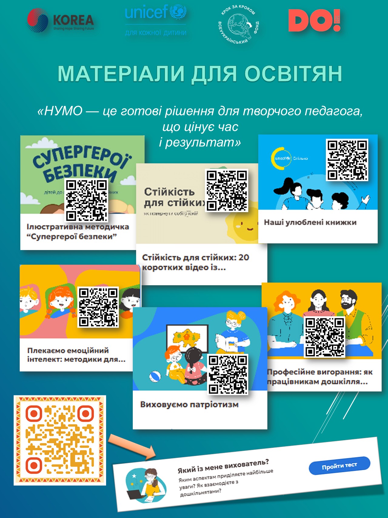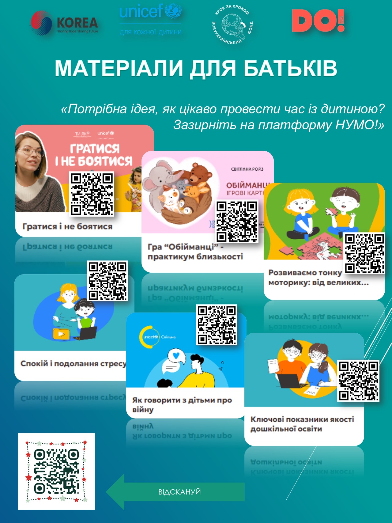 Ресурси НУМО: «Іскри суперсил», казки і мультфільми, ініціатива «Грай без страху», онлайн-дошкілля NUMO, чат-бота для батьків та інше